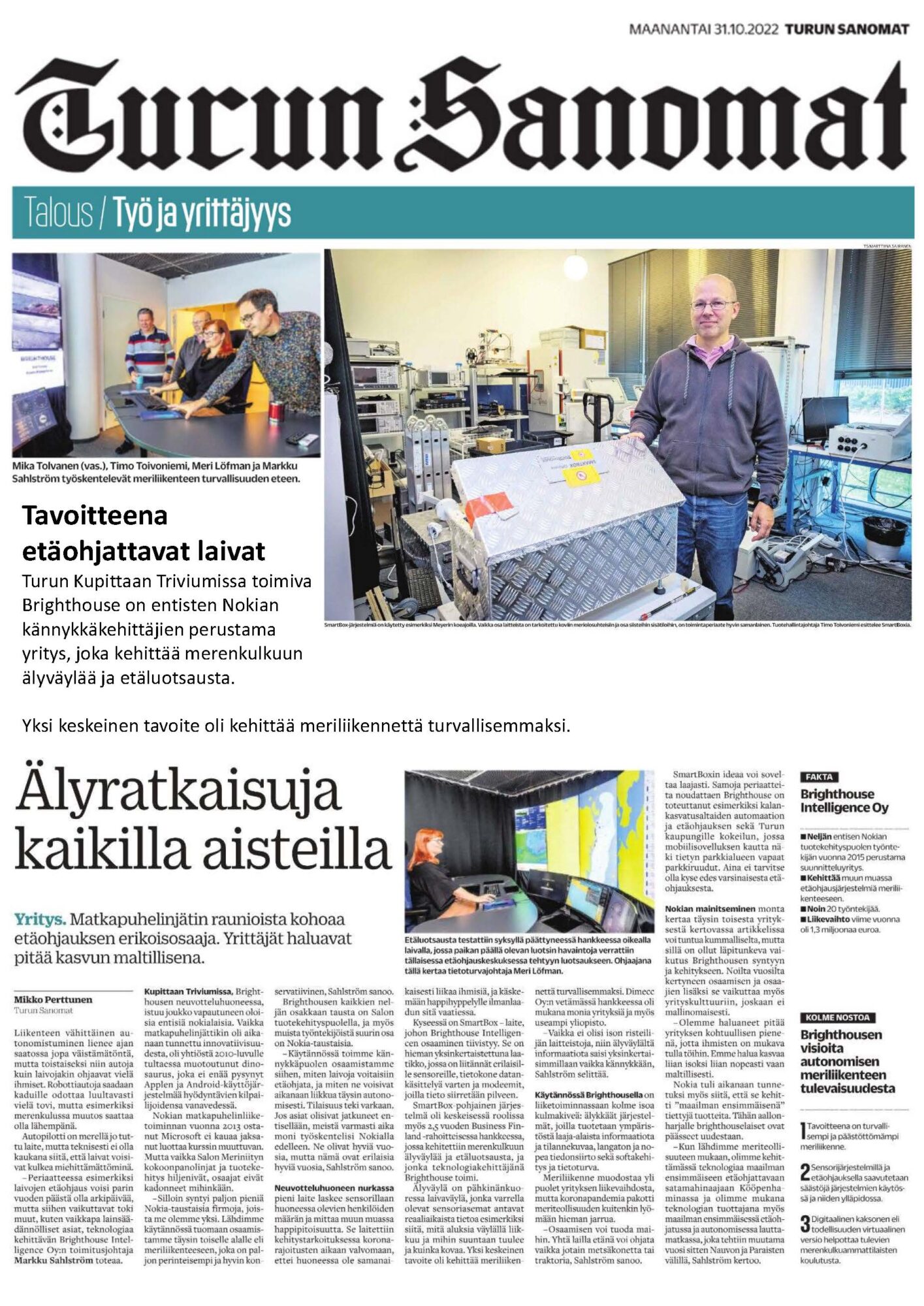 Turun Kupittaan Triviumissa toimiva Brighthouse on entisten Nokian kännykkäkehittäjien perustama yritys, joka kehittää merenkulkuun älyväylää ja etäluotsausta. Yksi keskeinen tavoite oli kehittää meriliikennettä turvallisemmaksi.